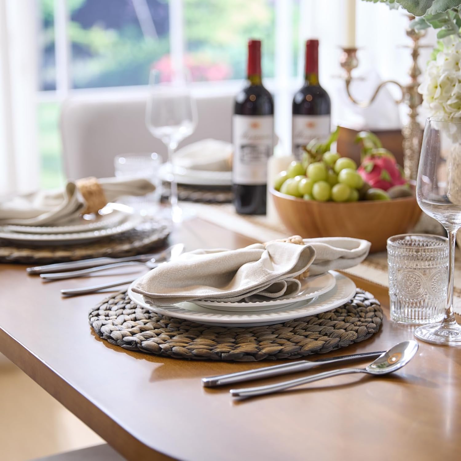 Protect your dining table with these natural, durable placemats. Made from water hyacinth, they offer a soft touch and rustic style. Easy to clean and suitable for various occasions.