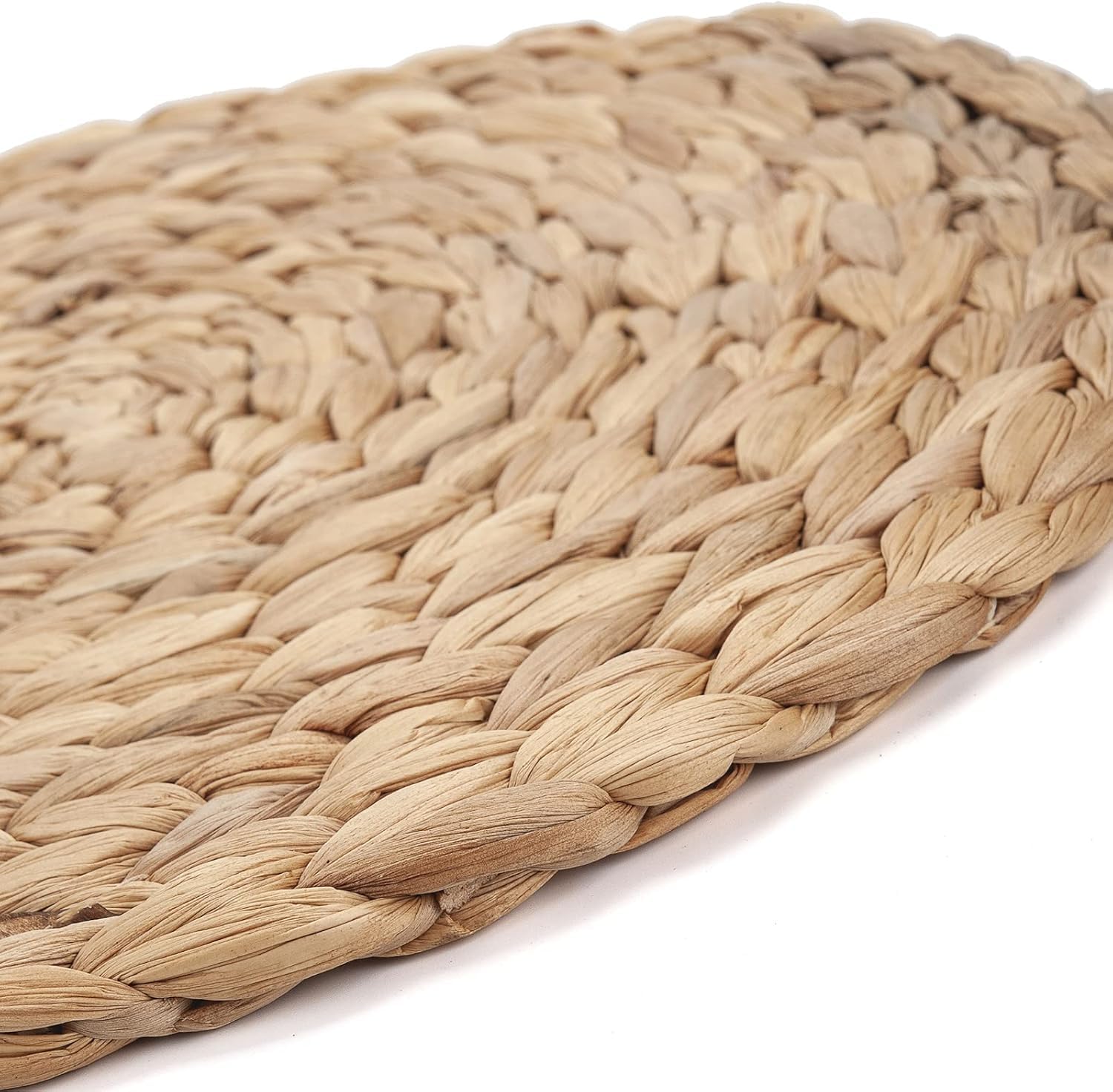 6 Pack Woven Placemats, Round Wicker Placemats, Rattan Place mats, Natural Hand-Woven Water Hyacinth Table Mats, Braided Straw Table Mats for Dining Table (15 inch)