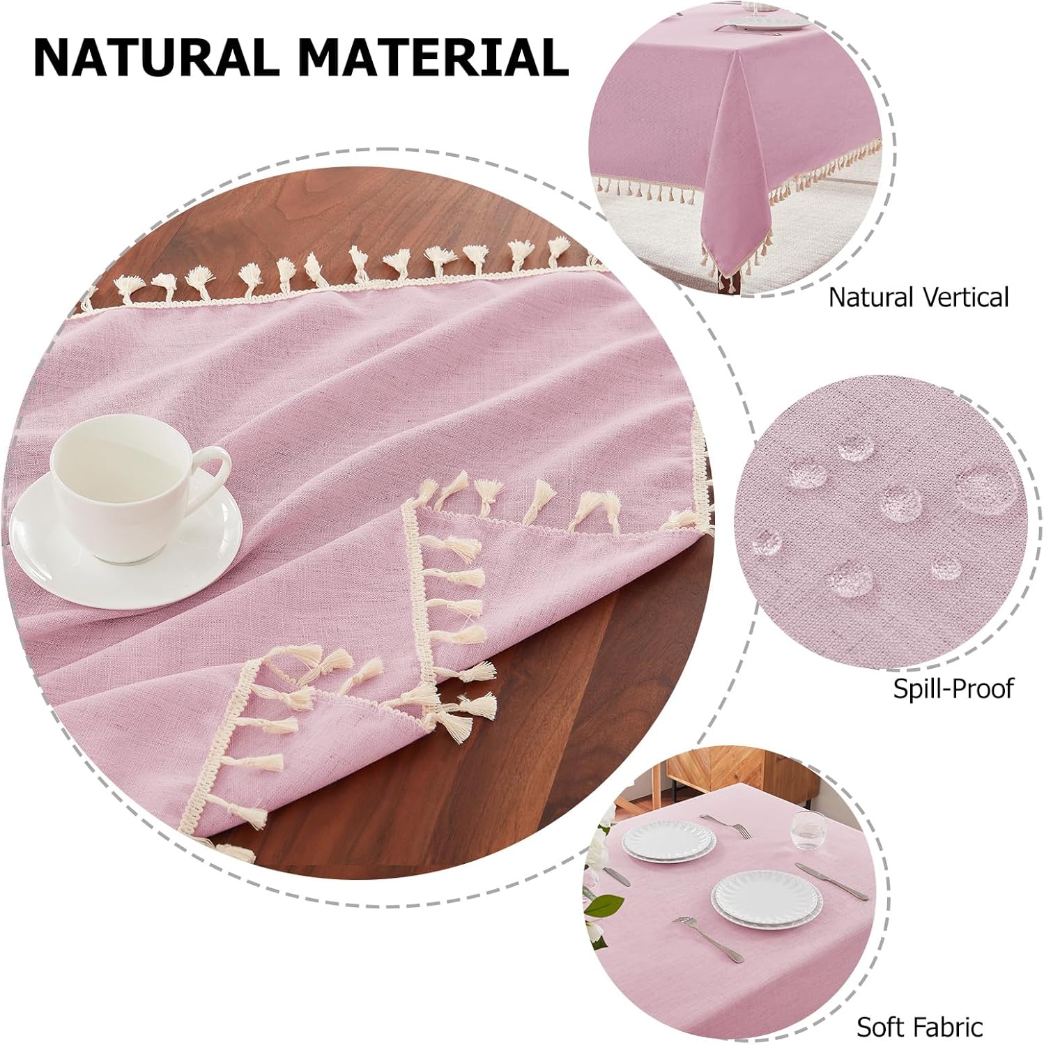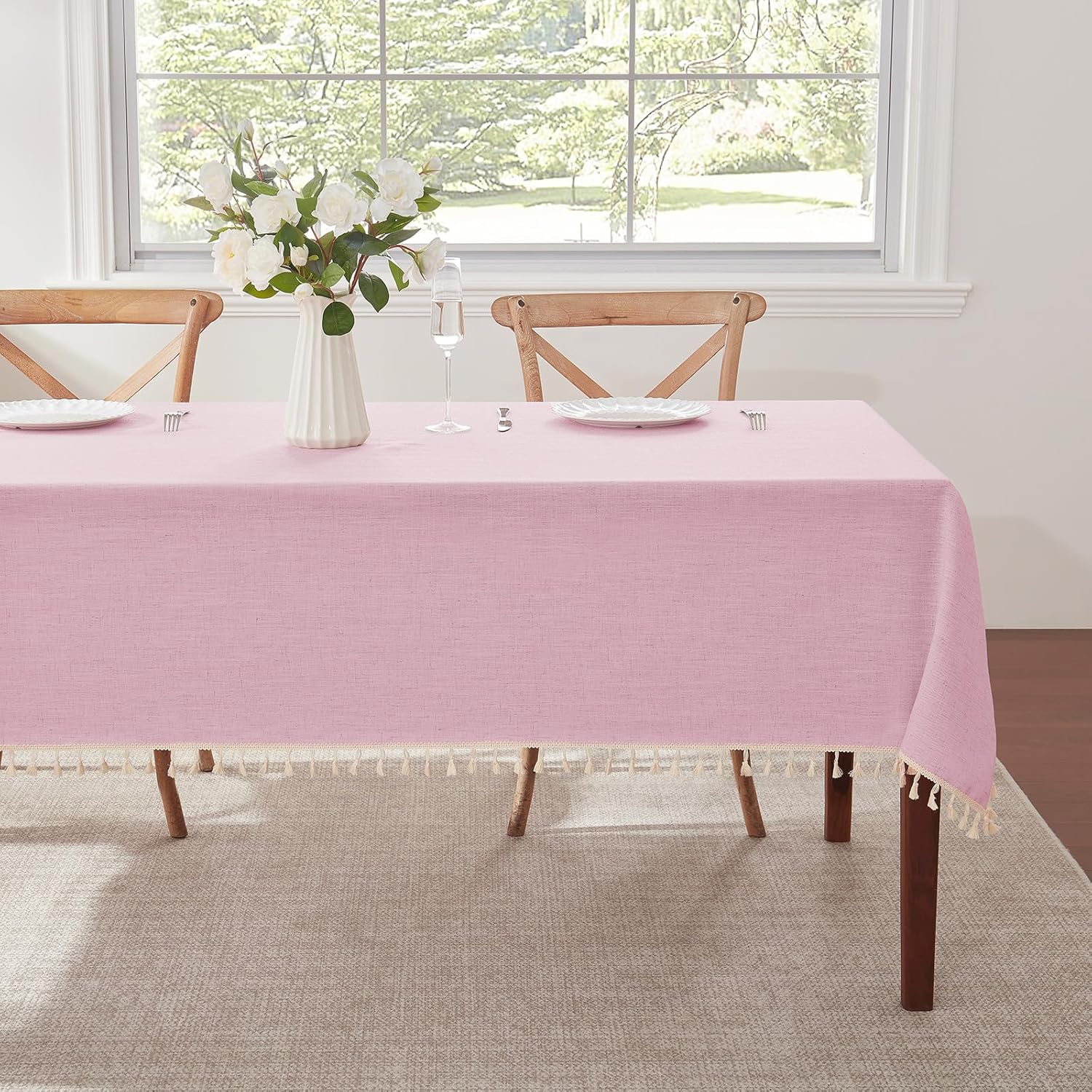 Alsoo Table Cloth Rectangle Table Heavy Duty Cotton Linen Tablecloth Farmhouse Boho Waterproof Wrinkle Free Tables Cover with Tassel for Kitchen Dining Holiday Party, Pink, 55" x 75"