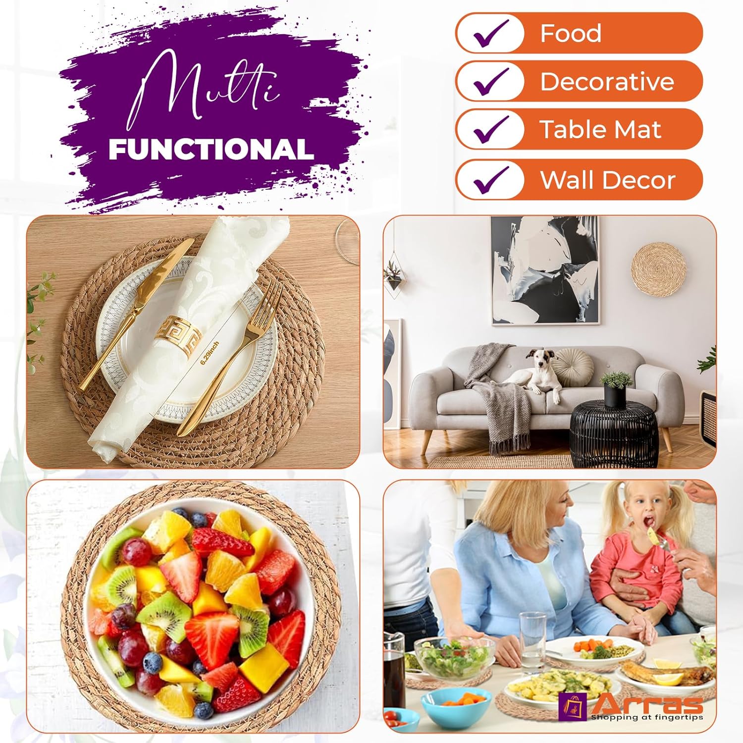 ARRAS 6 Pack Woven Round Rattan Placemats I 12" Natural Water Hyacinth Wicker Placemats I Rustic Boho Braided Wicker Table Mats I Heat Resistant Woven Placemat I Ideal for Dining, Kitchen, Home Decor