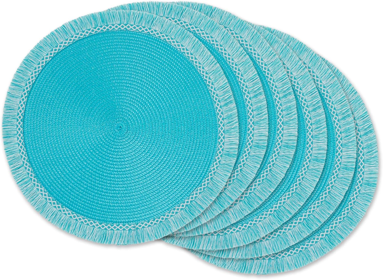 DII Woven Placemat Collection Round, 14.75" Diameter, Nautical Blue Fringe, 6 Piece