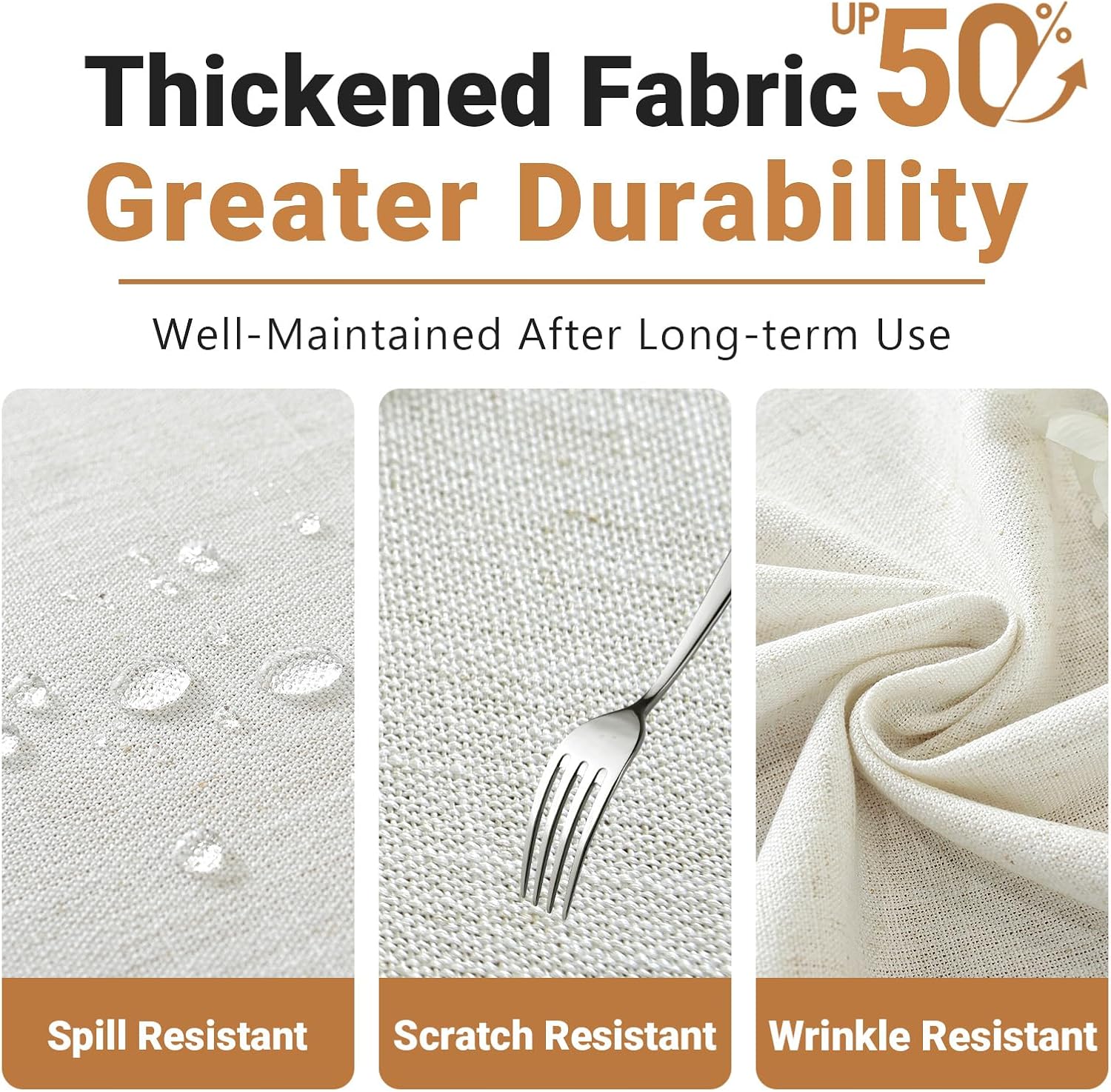 Laolitou Textured Table Cloth for Rectangle Table, Heavy Duty Farmhouse Tablecloth Solid Cotton Linen Waterproof Wrinkle Free Burlap Tables Cover for Kitchen Dining,Party, Ivory 55''x90'',6-8 Seats