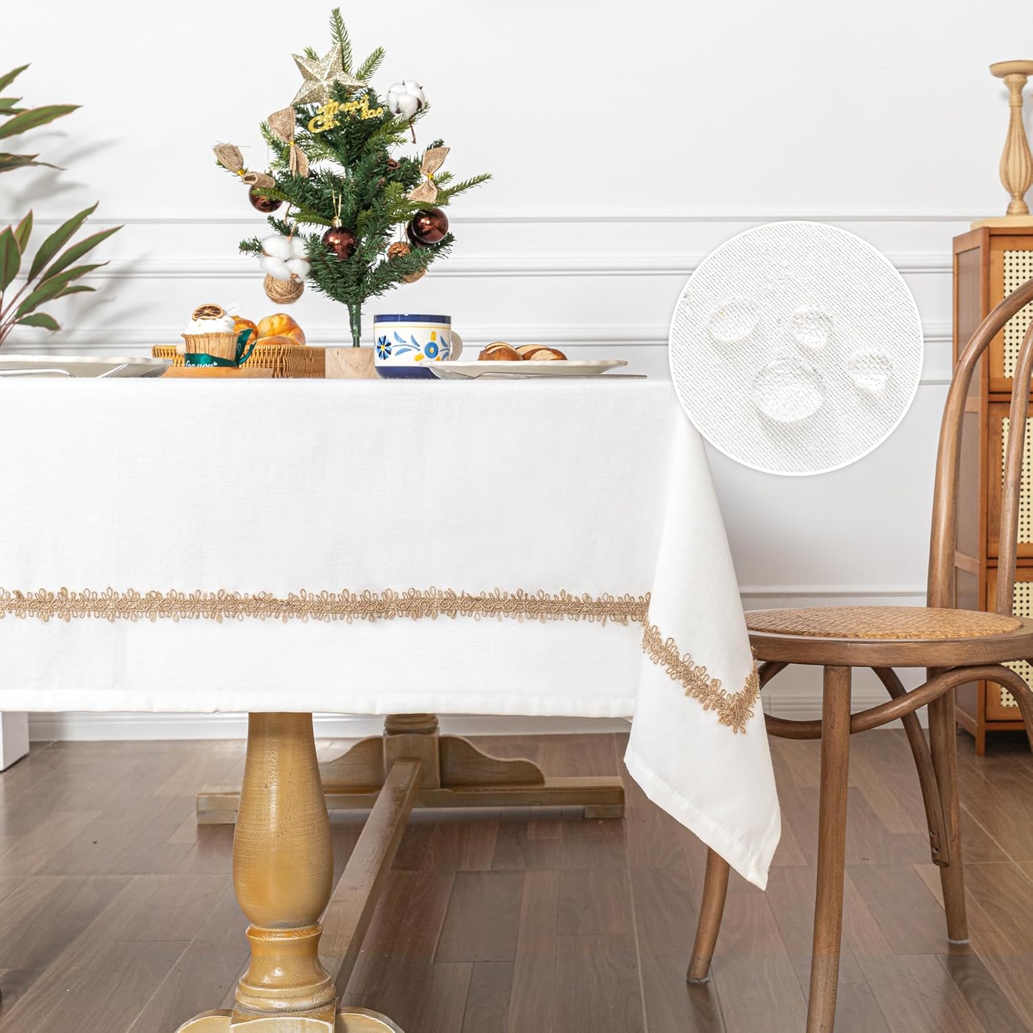 MYSKY HOME Table Cloth 60x84 in Rectangle Table, Heavy Duty Cotton Tassel Linen Look Waterproof Tablecloths Farmhouse Tablecloth, Wrinkle Free Table Cover with Beige Tassels for Kitchen Dining, Party