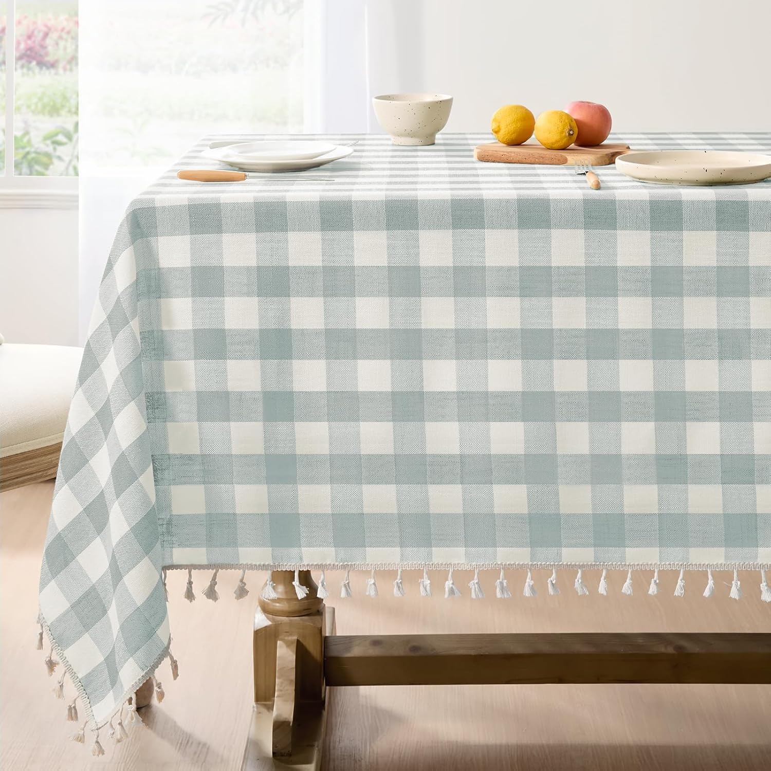 Softalker Checkered Tablecloth Rectangle, Heavy Weight Linen Cotton Gingham Outdoor Table Cloth with Tassel, Washable Wrinkle Free Buffalo Plaid Table Cover for Dining/Party/Home - 55 x 84 Inch, Sage